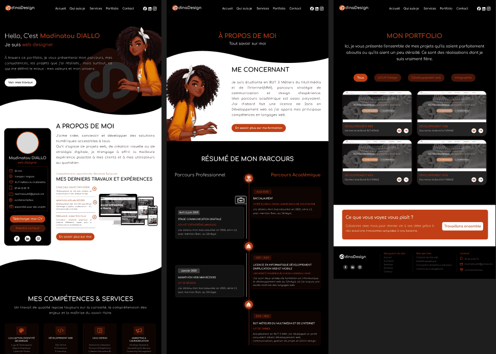 Maquettage de mon portfolio Voici la maquette de mon portfolio, réalisée sur Figma, accompagnée de son prototype interactif. Vous pouvez y accéder via ce bouton. Voir la maquette Vous devriez également aimer Maquettage de site web février 6, 2026 Prototypage d’application mobile sur Figma février 8, 2026